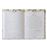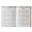 270 páginas papel color marfil de 90g. Cubierta de tela impresa con protección mate y estampación del año en oro rosa. Tela contracolada. Encuadernación cosida con tapa blanda.Goma de cierre de 5 mm y cinta de registro. Semana vista a doble página.