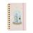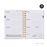 Cubiertas de cartón forrado plastificado mate, cierre con goma. Encuadernación wire-o con hojas microperforadas en la esquina para señalar la fecha actual.