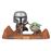 Figura de 10 cm hecha en PVC que representa al personaje de Baby Yoda acompañado por un mandaloriano, uno de lso alieníginas del planeta Mandalore, en la serie The Mandalorian.