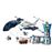 - Accesorios incluidos: una cafetera y una taza, una pantalla de ordenador, 2 pantallas de la torre de control, 3 pares de esposas, 2 walkie-talkies, 3 cascos con viseras abatibles, una gorra de policía y una cámara de seguridad.