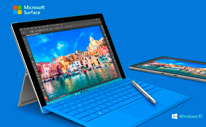 Microsoft Surface Pro 4 Microsoft Surface Pro 4 te ofrece la posibilidad de utilizar aplicaciones de nivel profesional. Con una pantalla PixelTouch de 12,3 pulgadas y una resolución de 2736 x 1824 (267 ppp), podrás editar vídeos HD de forma profesional, utilizando programas como Adobe® Premier® Pro CC3.