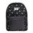 Mochila Sweet Flowers decorada con una tela estampada con pequeñas flores sobre negro, combinado con un estampado de puntos Nergia sobre giros.