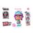 Muñeca con 5 puntos de articulación. Sus ojos cambian accionando un botón sobre su cabeza para mostrar hasta 3 expresiones diferentes.