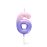 Vela de color rosa con forma de número 6. Con soporte de plástico.