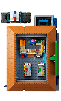 ¡Gracias y vuelve pronto al Badulaque! Cuenta con numerosos estantes bien abastecidos, tejado desmontable, una figura de Jasper congelado, 6 minifiguras, un coche de policía y otros muchos accesorios.