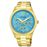 Reloj Pulsar Casual para mujer. Correa y caja de color dorado. Dial en azul.