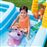 ¡El centro de juegos Intex aventura en la jungla te traslada a un río en elcentro de la selva con animales, palmeras y mucho más!El hinchable se divide en 2 piscinas, una pequeña y otra más grande, que están conectadas entre sí a través de un tobogán con base acolchada.En la parte de la piscina pequeña, el centro de juegos tiene un aspersor con toma para manguera de jardín.Las dimensiones del centro de juegos son de 257x216x84 cm, en la piscina pequeña caben 57 litros y tiene un agujero que filtra el agua para que no supere los11cm: en cambio, la piscina grande tiene capacidad para 493 litros.También cuenta con una válvula que ajusta la potencia del agua.Incluye varios accesorios y juegos hinchables como un monito que se sujeta o suelta de las palmeras (también inflables), un flamenco que es un juego de anillas y un panel para encajar las 5 pelotas que se incluyen.Además, dentro de la piscina más grande hay un hipopótamo y un cocodrilo dibujados en el suelo que tienen parte de su cabeza hinchable.El centro de juegos Intex aventura en la jungla tiene un tapón de drenaje que facilita el vaciado y parche de reparación para arreglar posibles poros o pinchazos en el hinchable.El peso máximo que soporta es de 81 kg y está recomendado a partir de los 3 años de edad.¡Diversión a lo grande con los centros de juego Intex!