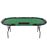 Organice un juego de póker profesional en la comodidad de su hogar con esta mesa de póker plegable.La superficie está hecha de material MDF con una tapicería de poliéster que ayuda a que las fichas y las cartas se deslicen más fácilmente por la superficie.Tiene un borde de cuero artificial acolchado en el que los jugadores pueden descansar sus brazos cómodamente.La mesa de casino está diseñada con 9 portavasos y 1 bandeja de distribución por lo que cada jugador tiene su propio lugar.Cuando no esté en uso, puede doblar fácilmente la mesa de póquer y almacenarla.¡Coloque nuestra mesa de póquer en su habitación y comience a jugar! Nota: Las fichas y las cartas de póker no están incluidas.Fácil montaje.Colores: Verde y negroMaterial: Tablero de MDF, tapicería de poliéster con reposabrazos de cuero artificial y patas de aceroDimensiones: 206x106x76 cm (longitud x anchura x altura)Forma ovalAdecuado para hasta 9 jugadoresCon espacio para una bandeja de distribución para 500 fichasCon 9 portavasos de plástico negroPlegableFácil montajeNota: Las fichas de póker y las cartas no están incluidasMaterial: Poliéster: 100%Colores: Verde y negroMaterial: Tablero de MDF, tapicería de poliéster con reposabrazos de cuero artificial y patas de aceroDimensiones: 206x106x76 cm (longitud x anchura x altura)Forma ovalAdecuado para hasta 9 jugadoresCon espacio para una bandeja de distribución para 500 fichasCon 9 portavasos de plástico negroPlegableFácil montajeNota: Las fichas de póker y las cartas no están incluidasMaterial: Poliéster: 100%