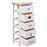 Nuestra mesa auxiliar de madera será un aporte práctico y decorativo para tu hogar. También se puede usar como mesa de teléfono, mesita de dormitorio, etc. Hecha de madera de Paulownia, esta cajonera es muy duradera y robusta. El armario ofrece un gran espacio de almacenaje con 5 cajones. Además, la robusta superficie es ideal para colocar objetos decorativos, marcos de fotos o macetas. Se limpia fácilmente pasando un paño húmedo. El armario auxiliar es fácil de montar. Color: Blanco y color de maderaMaterial: Madera de PaulowniaDimensiones: 35 x 25 x 87 cm (ancho x profundo x alto)Con 5 cajonesADVERTENCIA: Para evitar el vuelco, este producto debe usarse con el dispositivo provisto para fijarlo a la pared